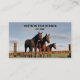 This editable business card features a picture of a horse family by a fence. The details of the business are on the back. The name of the business as well as a field for other information is on the front. The text can be changed and so can the font style, size and colour. The background colour on the back can be changed, too. This versatile business card can be used for any equine business.
