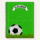Personalised soccer notebook featuring a bright green football pitch, a soccer ball, and your kids name.