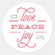 LOVE PEACE JOY to you Holiday Sticker in festive red and white. Celebrate in style! edit your name and message