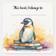 Editable Penguin and Books Bookplate Sticker