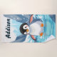 This beautiful beach towel features a penguin and an editable name at the top. You can change the name as well as the font style, size and colour.