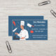 This editable business card features an illustration of chef with food and cooking tools to the left and the business details to the right. This information is editable so go ahead and change the details as well as the font style, size and colour. On the back is a field for additional details which is editable, as well. The background colour on both sides can be changed, too. This business card can be used for chefs, personal chefs, restaurants, catering companies etc.