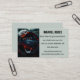 This editable business card features a photo of the interior of a car and a hand on the steering wheel to the left. This picture is editable so you can leave it as is or substitute it for a picture of your own! The details of the business are to the right. The text can be changed and so can the font style, size and colour. The background colour on both sides can be changed, too. This business card can be used for private drivers, taxi cab drivers, car salesmen, delivery drivers, car distributors, etc.