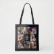 Editable photo collage tote bag featuring a black background, 8 family photos, and a text template that is easy to personalise.