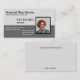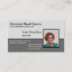 This editable business card features a two-toned design. To the right is a portrait and there is information about the company and employee on the card. On the back, there is a field for additional information.