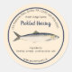 This editable label features a light background with a gray ring. In the center is an illustration of a herring fish. At the top is the contact information for the company/ business, the company name and the product name. Below, is the ingredient list and the website information. All text is editable so go ahead and change the information as well as the font size, color and style. You can also change the background and ring colors.