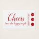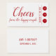 Want to offer your guests a way to enjoy several alcoholic beverages during your reception or party without being committed to an open bar? These 3 punch drink tickets could be ideal for you! In a pretty cherry red script font, the front message reads "Cheers from the happy couple". The text is editable, should you wish a different message to be printed on the front. Rotated, to the right and placed between slim red lines are the words "Redeem at the Bar"; this text is also editable. Three numbered circles were added to the right so your guests can have their cards punched at the bar as they're served up to three complementary drinks. The other side has template fields set up for your names and date. A sweet alternative to the open bar. Designed by Melody Watson for Paper Muserie.