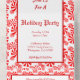 An editable Holiday party all-in-one invitation template with script letters and retro letters and room for your party info on a background pattern of red and white peppermint candy framed in red.