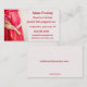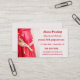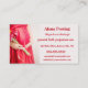 This editable business card features a photo of a pregnant woman in a deep pink dresswith flowers in her hand. The details of the business are on the front and there's an editable field for additional information on the back. You can change the details as well as the font size, style and colour. The background colour on both sides can be changed, too.