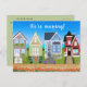 This postcard features an illustration of a row of houses. Above it , it says, "We're moving". On the back, it has a message to the reader. All text on the front and back (with the exception of store names) is editable so go ahead and change the message on the front and back as well as the font style, size and colour and make it your own!