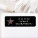 This patriotic return address features a rustic illustration of an American flag within a star shape against a black background.