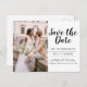Editable Modern and Elegant Minimalist Save the Date Wedding Postcard. The save the date invitation card includes modern hand lettered script typography with a chic and simple design that you can add your customised engagement photograph picture to.