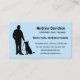 This editable business card features a silhouette of a dog and its trainer on the left and above and to the right are details of the business. The text on the front is editable so go ahead and change the information as well as the font size, color and style and make it your own! The background color on the front and back can be changed, as well. This business card can be used for dog trainers, dog boarding, dog nutritionists, pet stores, vets, pet supplies, etc.
