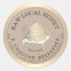 Editable kraft vintage skep honey label. Text reads, "Pure Honey," with the beekeeper's name. Ideal for beekeepers and honey sellers. Gold gradient border.