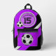 Editable Soccer Ball Modern Purple Birthday Printed Backpack