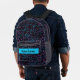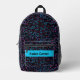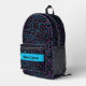 This modern backpack features a technology network connections design with an editable name. The background colour behind the name can be changed. The name can be changed as well as the font style, size and colour.