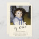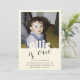 Celebrate your baby boy’s first big milestone in timeless style with this vintage-inspired first birthday invitation card. This elegant design features a soft cream background with a warm, nostalgic tone that brings a classic charm to your party announcement. The layout is beautifully arranged with a bold custom photo at the top, followed by modern calligraphy and serif fonts that read “[Name] is one,” giving it a personal yet polished look.