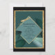 Wedding invitations are emerald, gold, and black
