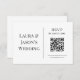 A sleek and practical RSVP card featuring a minimalist design with classic fonts on a white background. Customise it with your names, wedding website, QR code, and date to ensure guests confirm their presence on your special day.