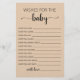 Purchase this editable card and enjoy high quality Wishes for Baby for your event! This is a card template, You can personalise the card, change the text as you wish! Baby Shower Activities! Gender Neutral Kraft paper design.