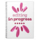 In this Editing in Progress notebook for writers and authors you can write down any thoughts you have about editing your novel or short story such as plotting or outlining changes, character and setting changes, sections to go back to rewrite or even a to do list of things to edit or research further. Or add anything else that helps you keep track of the story you're writing and editing.