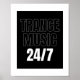 Visual design centered on the text "Trance Music 24/7", ideal for techno lovers, EDM, progressive and global electronic culture. Dark background bold typography, minimalist style with high visual contrast to highlight message and capture glances. This design focuses on the message "Trance Music 24/7", with a strong, modern and minimalist aesthetic. It transmits the energy of those who live electronic music intensely, whether it be trance, techno or EDM. The large, clear lyrics capture the essence of the dance floor and the electronic lifestyle: constant rhythm, continuous passion, day and night. ENGLISH: Visual design focused on the text "Trance Music 24/7", ideal for lovers of techno, EDM, progressive and global electronic culture. Bold typography on a dark background, minimalist style with high visual contrast to highlight the message and attract attention. This design focuses on the message "Trance Music 24/7", with a strong, modern and minimalist aesthetic. It conventions the energy of those who live electronic music intensely, be it trance, techno or EDM. The large, clear lettering captures the essence of the dance floor and the electronic lifestyle: constant rhythm, continuous passion, day and night.