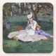 Edouard Manet - The Monet family in their garden Square Paper Coaster