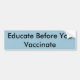 This bumper sticker encourages people to educate themselves as to the ingredients in vaccines, possible side effects, and how they can negatively affect the immune system.