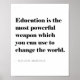 Classic and timeless, this design fits with any style. A bold serif font with elegant detail was carefully selected for the quote and a minimalist, skinny sans was chosen for the author's name. Designed for a modern minimalist look that is both timeless and classic, this design has a style that is versatile enough to look great any home from the most modern to the trendy rustic farmhouse. This inspirational quote was selected with homeschoolers in mind, but can also be appreciated by teachers and educators. The quote reads: "Education is the most powerful weapon which you can use to change the world."