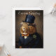 The image on this greeting set presents a guinea pig dressed in traditional Edwardian attire. The guinea pig is adorned with a black top hat and a tailored dark coat with a lapel, accented by a boutonniere. Underneath the coat, it appears to wear a shirt complemented by a light-colored bow tie. The subject is posed against a textured brown backdrop that mimics the style of classical portrait photography from the early 20th century, invoking the fashion and formal portrait style of the Edwardian era. generativecontent