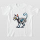 This t-shirt features an extraordinary fusion of a cat and skeleton, brought to life through a hyperdetailed coloured pencil illustration. The creature boasts a round, skull-like head with hollow eyes, seamlessly blending into a cat-like body with a beautifully shaded, swirled tail. The intricate details and plain white background make this design perfect for lovers of gothic, surreal, and artistic styles. A must-have for those seeking a spooky yet elegant wardrobe piece!