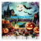A watercolor illustration capturing the spooky atmosphere of Halloween. It features classic Halloween symbols such as an old mansion, jack-o'-lanterns, and crows, beautifully rendered in watercolor to create a unique and charming ambiance.