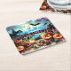 Eerie Halloween Night Watercolor Square Paper Coaster
