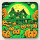 Eerie Nightfall: Halloween Cartoon Pumpkin Patch Coaster
