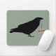Mousepad with my original digitally created image of a raven or crow. The raven is ink black with blood-red eyes. He holds a chain in his mouth from which hangs a time-worn note reading "Nevermore". He stands against a grayish-green background with fine, tone-on-tone, wavy lines. A very literary way to bring interest to your workspace at Halloween or most any other time.