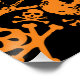 "Explore the enigmatic composition of 'Eerie Symmetry,' a captivating artwork featuring a multitude of human skulls and bones in vibrant hues. Crafted through meticulous stenciling, the arrangement boasts an array of colours, with a striking contrast between the orange backdrop and the central white skull. Dive into this intriguing piece that plays with light, shadow, and the profound symbolism of life and mortality."