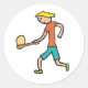 Egg and spoon race shows competitor running with egg balanced in spoon. Concentration, balance and the will to win come together in this supreme test of egg race skills.