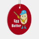 An egghead in a baseball cap and holding a baseball bat with the text Egg Batter is a funny food design for sports fans and cooks.