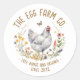 Charming watercolor egg farm sticker featuring beautiful chicken with wildflowers and butterflies. Perfect for farm fresh eggs, organic farm branding, egg carton labels, farmers market stands, and countryside businesses. Ideal for homesteaders, small farms, and backyard chicken keepers who want professional rustic labels for their egg packaging and farm products.