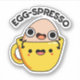 Egg-spresso Funny Egg Coffee Pun features a cute egg in a coffee cup. Perfect pun gift for family and friends who love cute coffee puns.