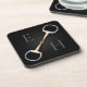 For equestrians and horse lovers, this coaster features a trompe l'oeil illustration of a copper mouth eggbutt snaffle bit between two monograms. You can either use your first and last initials of your name or the initials of a couple.