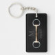 For equestrians and horse lovers, this keychain features a trompe l'oeil illustration of a copper mouth eggbutt snaffle bit between your monogram and name.