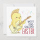 Cute "Most Egg-cellent Easter" design depicts a rock and roll chick with a mohawk hairstyle playing the electric guitar. This punny Easter design makes a nice Easter gift for music lovers, musicians, guitar player, metalheads and anyone else who likes music.