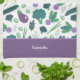 Eggplant and Broccoli Pattern with Name Purple Tea Towel