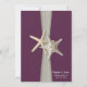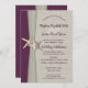 Pretty starfish and silver grey burlap design create a unique look for your beach or destination wedding. Elegant dark eggplant starfish beach wedding invitation. This invitation is entirely printed. There is no real burlap or starfish attached.