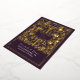 Set the stage for your fairytale wedding! These save-the-date cards feature a stunning mediaeval fantasy design with real gold foil of a sword surrounded by delicate florals on a rich eggplant background. Perfect for announcing your epic love story. Note that the gold on the back of the invitation is NOT real foil and is printed in flat colours.