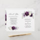 Elegant floral midsummer wedding program features a bouquet of watercolor roses peonies in shades of purple plum, champagne ivory floral and sage , lush green botanical eucalyptus leaves. Please find more matching designs and variations from my "blissweddingpaperie" store. And feel free to contact me for further customisation or matching items.