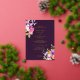 Stylish & elegant wedding invitation features gorgeous fresh floral bouquets for spring, summer, or fall weddings. Plum, purple, pink, sage, yellow gold, cream.