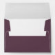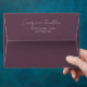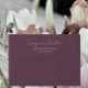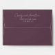 Eggplant coloured mailing envelope for your wedding invitations and features your name and address printed on back flap in a modern script style. Personalise your envelope by editing and replacing name and address with your own. Edit further to change font style or colour. Select your envelope size that fits your invitation.