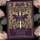 Eggplant Sword Floral Medieval Fantasy Wedding Invitation